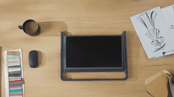 360度回転が可能なモニターと2段階高さが調整できるスタンドを設計